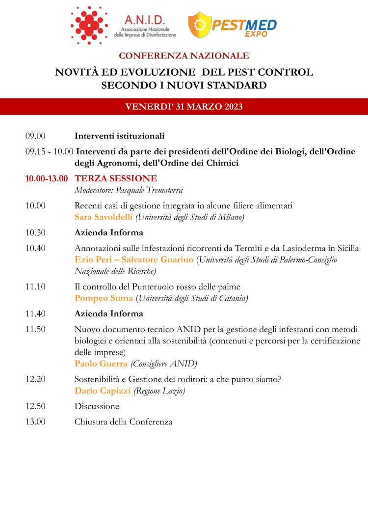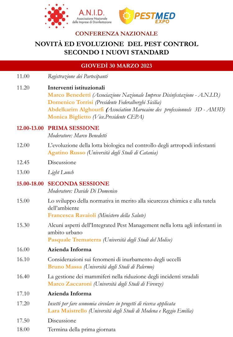 Il 30 e 31 marzo 2023 si è tenuta a Catania la Conferenza Nazionale A.N.I.D. “Novità ed evoluzione del Pest Control secondo i nuovi standard”.