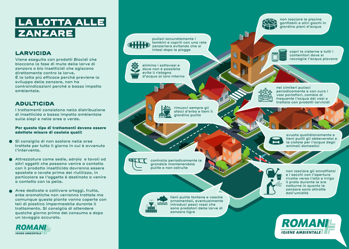 La Lotta Antilarvale è il metodo piu’ efficace e a basso impatto ambientale:individuando i focolai infestativi che sono spesso presenti anche in ambito domestico (nascosti in punti a volte difficili da raggiungere e vedere come ad esempio canale e pluviali con acqua stagnante, vespai inaccessibili, acqua dentro i tronchi e le canne di bambu’ tagliate ecc…) è possibile usare prodotti larvicidi con una elevatissima efficacia contro le larve di Zanzara.