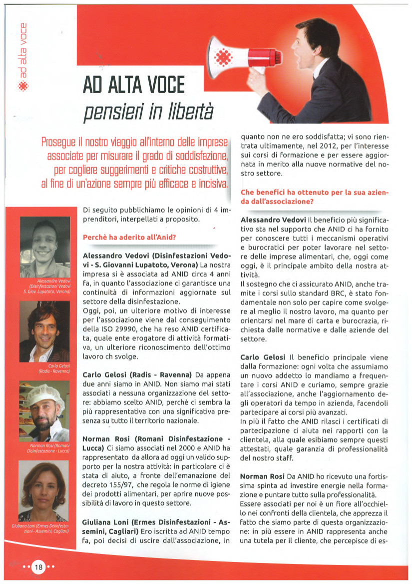Intervista a Romani Disinfestazioni: di seguito le interviste complete pubblicate sull’ultimo numero di “Disinfestare e dintorni” (la rivista pubblicata da ANID)ad alcuni disinfestatori ,tra cui Romani Disinfestazioni,che fanno il punto della situazione sul settore e sul ruolo dell’Associazione Nazionale delle Imprese di Disinfestazione in questo momento difficile per il mercato sopratutto dal punto di vista delle prospettive di crescita dell’economia nazionale.