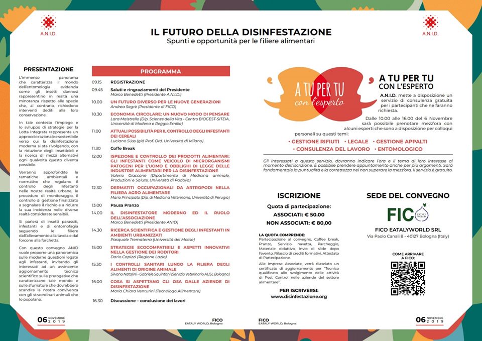 Il Futuro della Disinfestazione: di questo si parlerà Mercoledì 6 novembre alle ore 9,15, presso Fico Eataly World (via Paolo Canali, 8 – Bologna) dove si terrà il convegno nazionale organizzato da ANID.