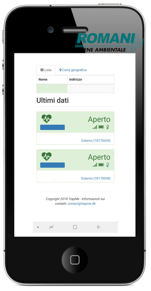 Il portale TrapMe(Tm) permette l’accesso ai dati inviati dalle trappole registrate per l’Utente ( in genere la ditta di disinfestazione) e visionare in tempo reale lo stato dei sensori,sia da Computer,che da Tablet e Smartphone