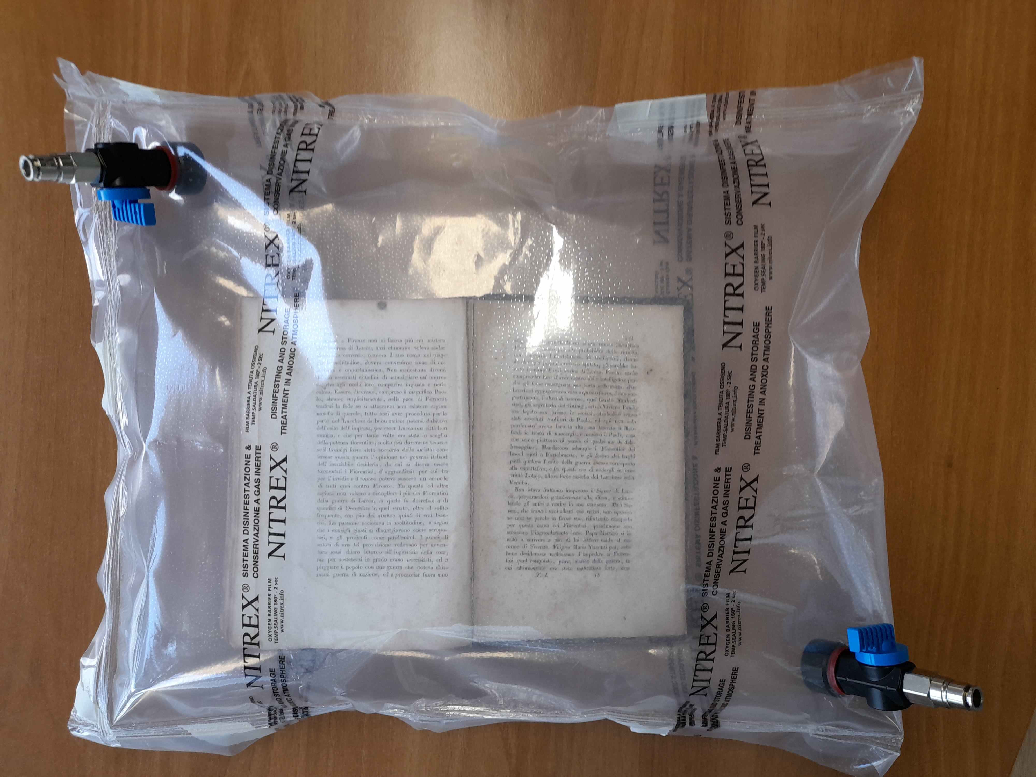 - Può essere usato per la conservazione di Beni anche a lungo termine (stoccati in depositi anche per diversi mesi per proteggerli da insetti, microrganismi, polvere e inquinamento atmosferico)