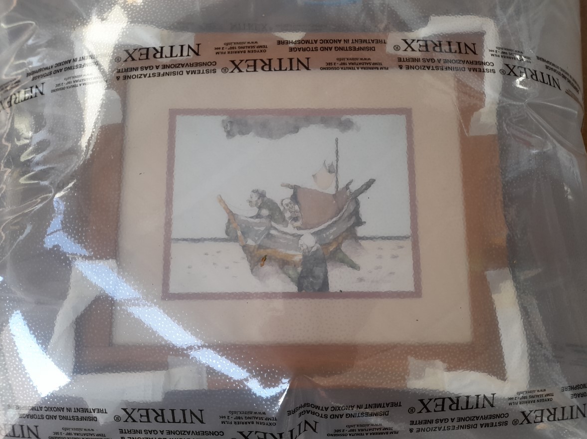 Fig.2 Quadro con cornice infestata da Anobium punctatum nella speciale bolla per il trattamento in Anossia