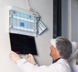 b) Lampada in area produttiva per alimenti a bassa deperibilità 1-2 muscidi per dm quadro