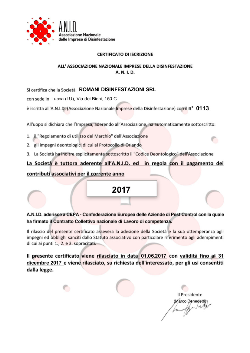 Romani Disinfestazioni è al fianco dell’Associazione delle Imprese di Disinfestazione, svolgendo con la massima cura questa professione che è oggi altamente specializzata e sempre di piu’ lo sarà nel prossimo futuro.