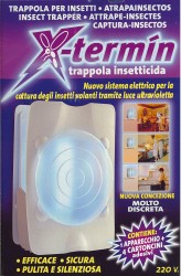 X-Termin è una trappola luminosa concepita per la cattura degli insetti volanti su supporto collante posto dietro la lampada a luce blu.